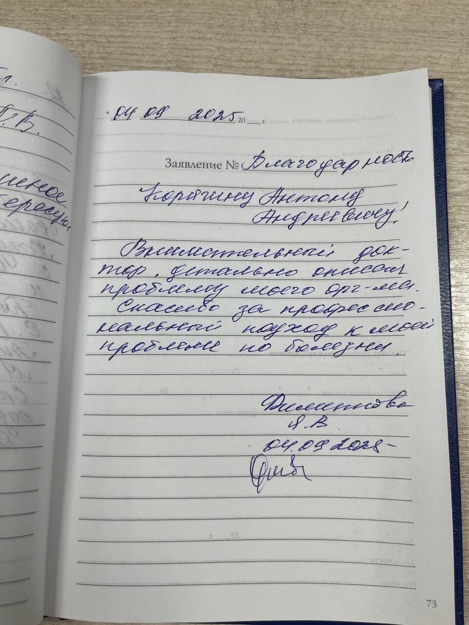 Благодарность Корягину Антону Андреевичу (Корягин К. А.)
